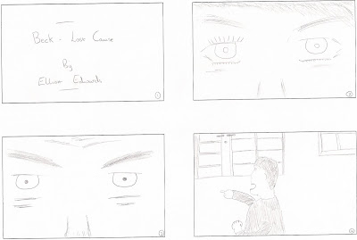 For my album cover i did not want to include a picture of Beck, instead i wanted to use something that would have connotations to my music video, for example perhaps a screenshot of my footage with text. I had a few very brief ideas as seen below that i sketched out for starting ideas:
